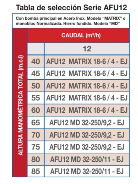 Grupo contra incendios AFU12 MD 32-250/9,2 o AFU12 MD 32-250/11 compuesto por: